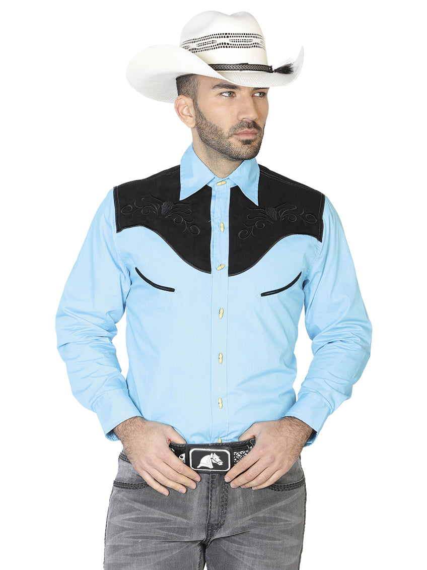 Camisa Charra Ante/Bordada El General 2019-128 55% Algodón 45%Polyester Azul 42573