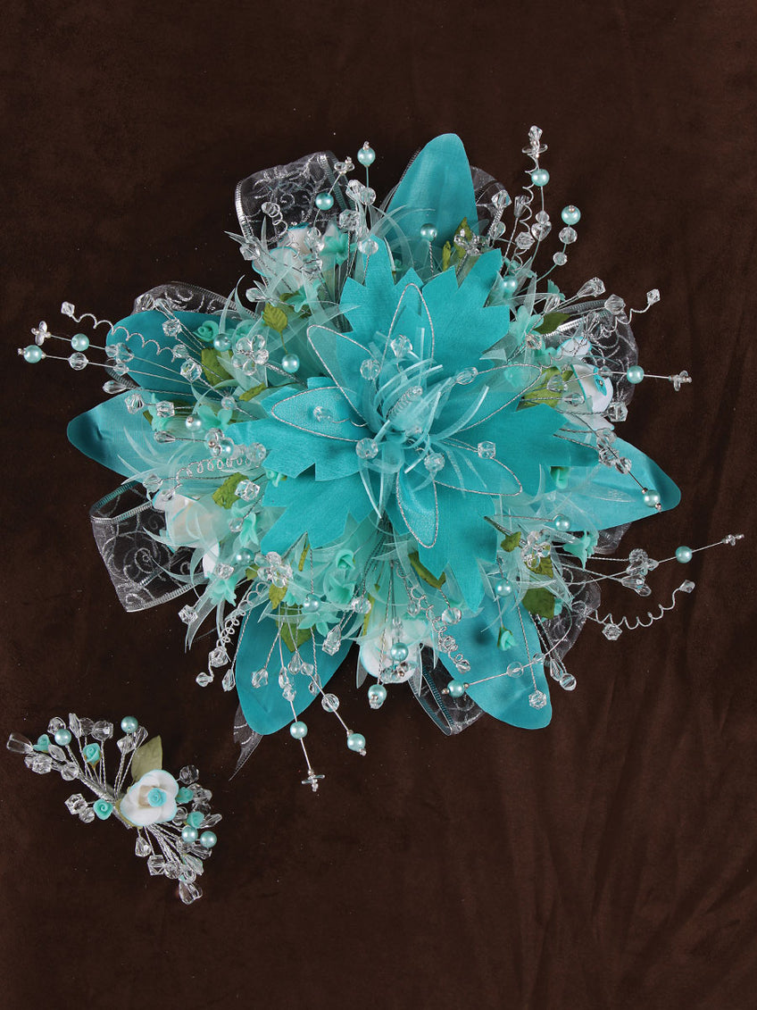 Ramos Quinceañeras Mis Xv Primaveras Flor Grande Acrylic/Satin Aqua 600054