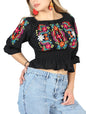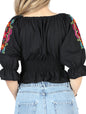 Artesanal Bordado Blusa 100% Algodón Negro 604051