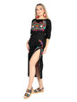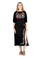 Artesanal Bordado Vestido 100% Algodón Negro 604054