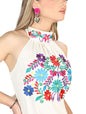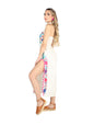 Artesanal Bordado Vestido 100% Algodón Beige 604055