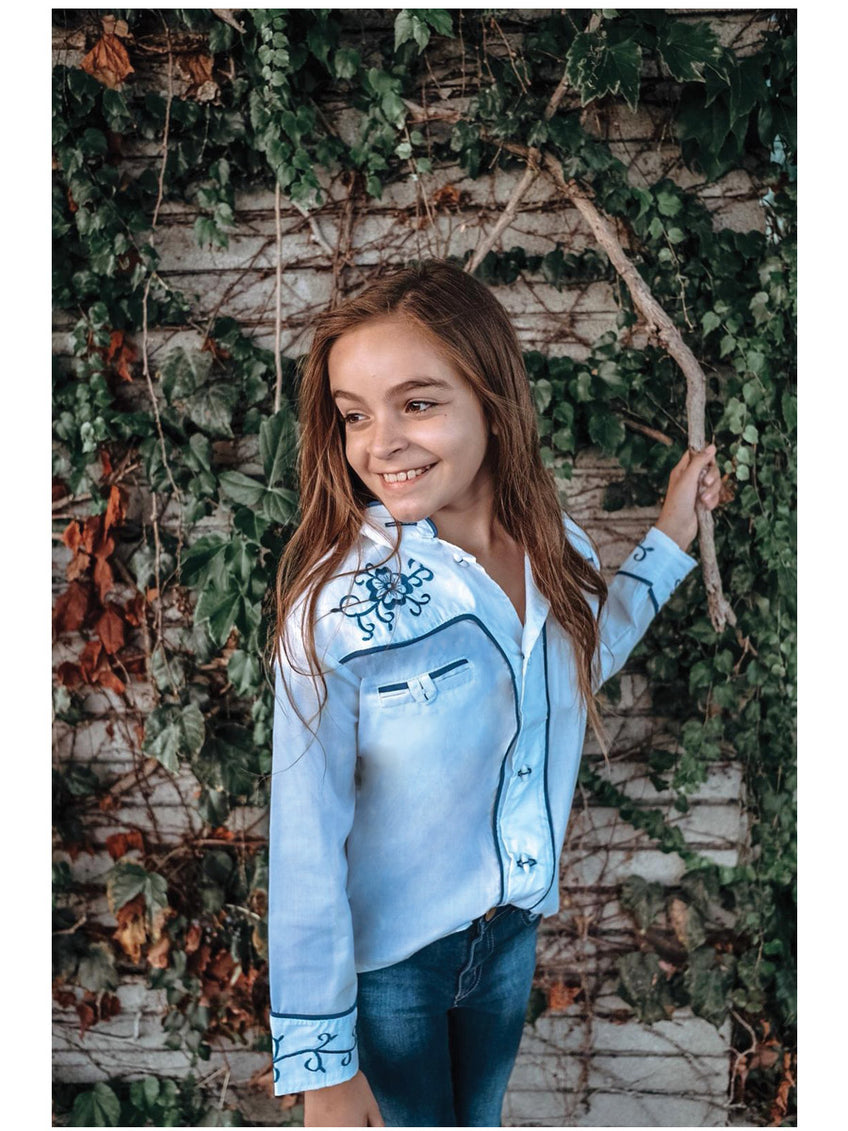 Camisa Charro Mis Xv Primaveras Cam-Flr-N 100% Polyester Blanco/Azul 601467